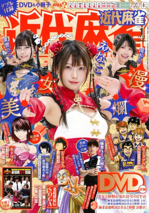 【お知らせ】 本日発売の『近代麻雀 1月号』にて 表紙&巻頭を担当させていただきました! 今年お披露目したチャイナ衣装で出てます🫶 ぜひぜひチェックしてね✨ 🛒amzn.asia/d/7m09Riu