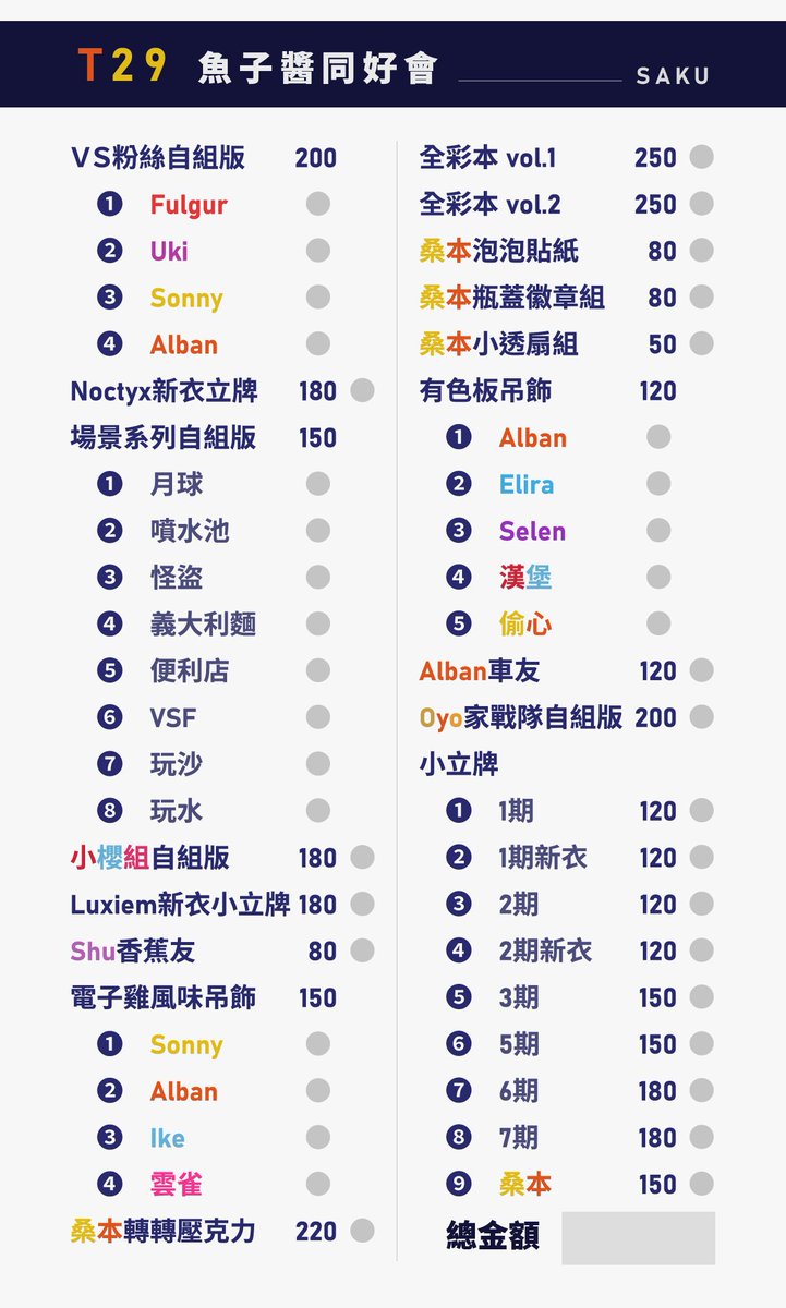 🆕CWT⁶⁴ D1-T29│魚子醬同好會🧀 ⁘ 新增場景壓克力品項編號跟名稱 ⁘ 新增桑本轉轉壓克力資訊 ⁘ N團立牌因有瑕疵價格調整為180元 ⁘ 第三張為菜單有需要可以使用~來場時歡迎出示菜單結帳速度會更快! twitter.com/0000sakuEN/sta…