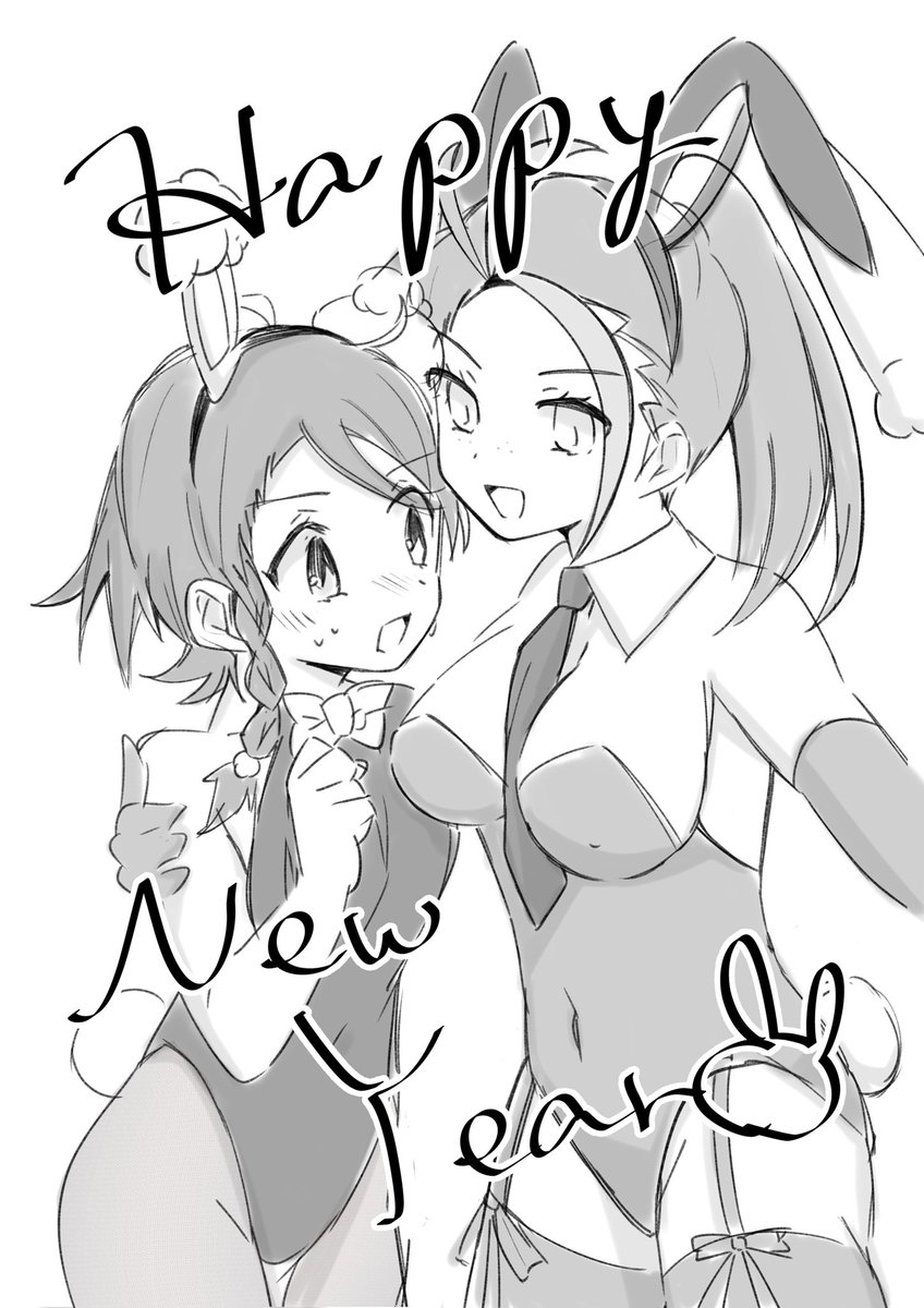 そのうち塗ります(多分) 描き初め🐰バニーなネモアオ ネモさんはもう実ってます……乳が