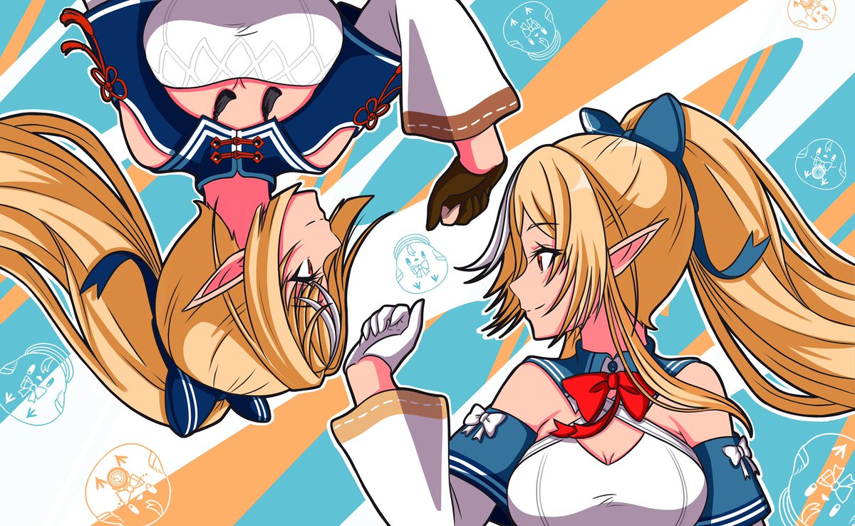 サンブレイク発売までにホロモンハン部のメンバー頑張って描こうと思っておりましたが三人しか描けませんでした(泣) #ホロモンハン部 #絵フブキ #しらぬえ #ルーナート