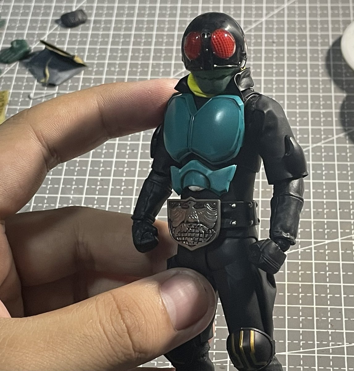#ニチアサフィギュア改造部 #造って遊ぼ 真骨彫製法 仮面ライダー旧一号改造2.0 劇中の配色、顔の部分、髪部分改修