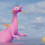 公式のMMDモデルに自作アクセサリ足してころさんのドラゴンズレア。たまたま手元にあったドラゴンのモデルをゲストに。 #できたてころね #戌神ころねMMD