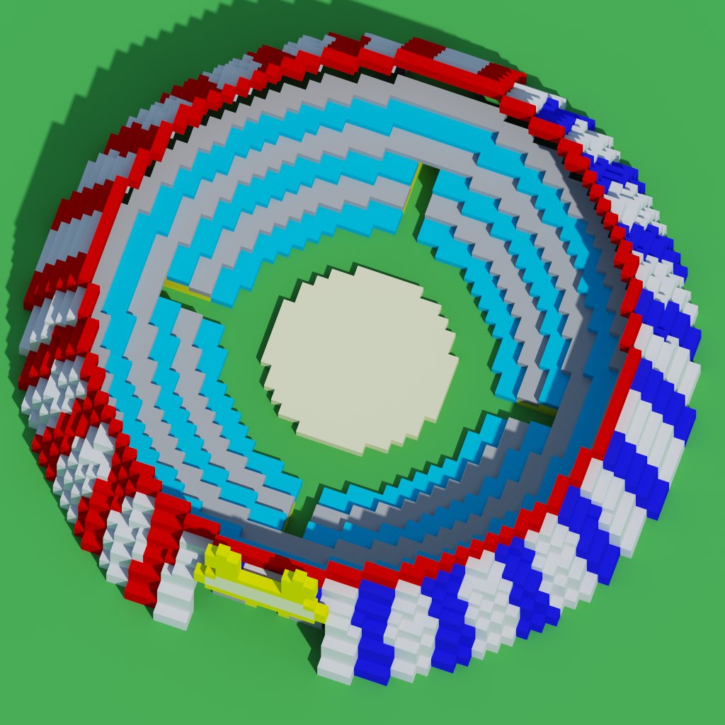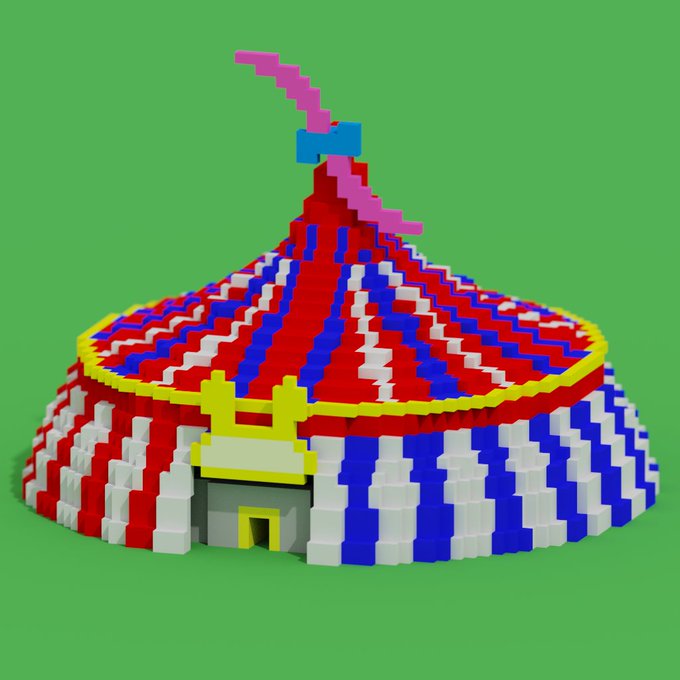 マイクラはやってないけどボクセルアートに手を出してみた。サーカステントとその中身。 #絵まる