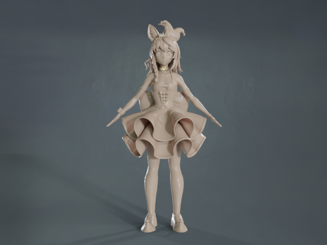 スカート作り直して、後はしっぽと足首と細々したパーツができればな尾丸ポルカさんの進捗です。 #絵まる #3DCG #b3D #blender