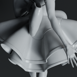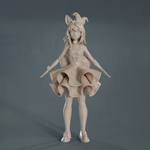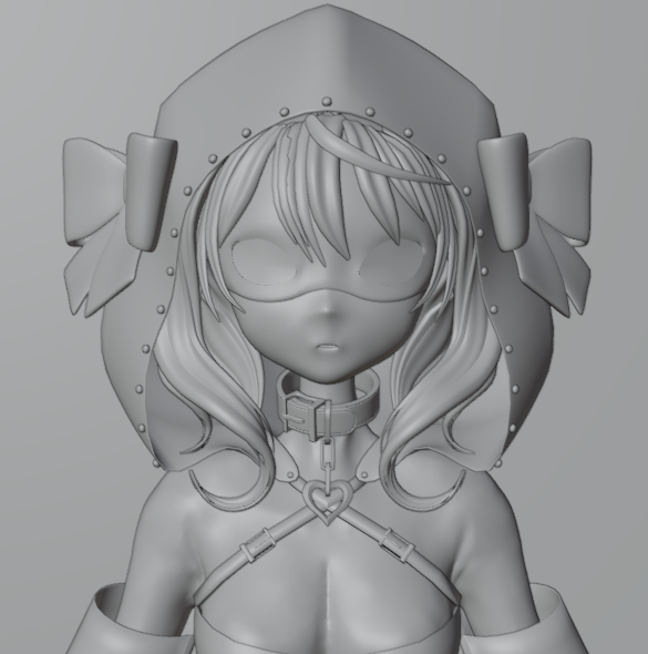 スカルプトでもりもり制作中のポルカさん進捗。頭部の細々したとことスカートのベースをざっくり追加。現時点で100万ポリゴンちょい。 #絵まる #3DCG #b3D #blender
