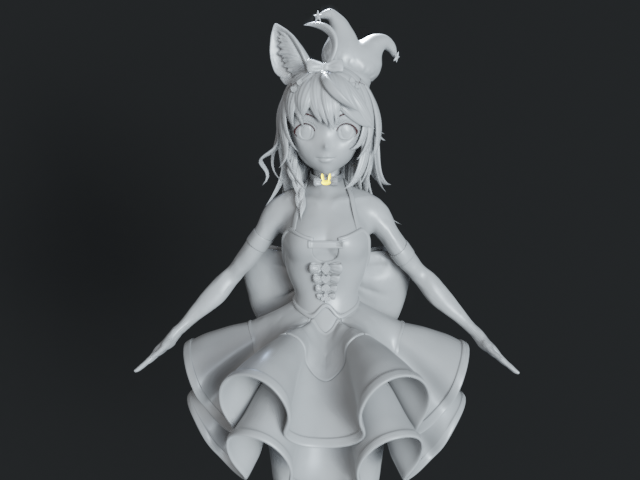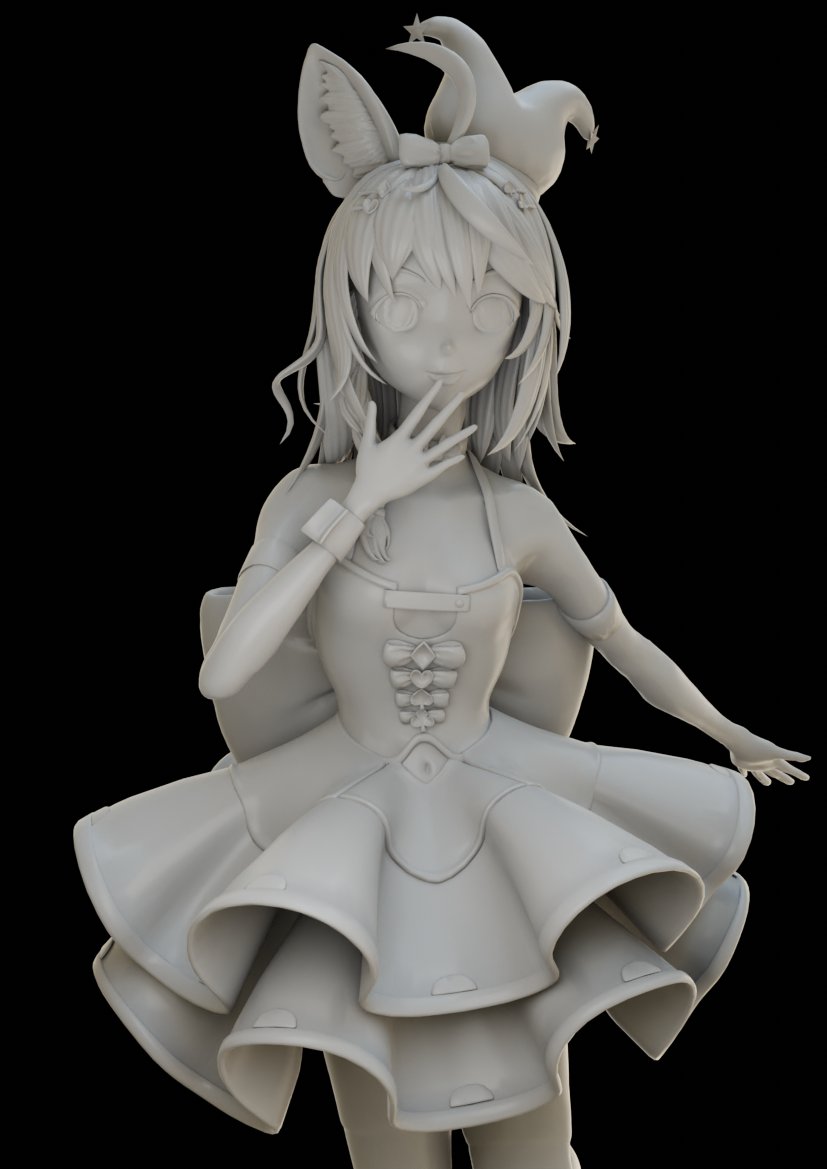 長いことあーだこーだ作ってた尾丸ポルカさん。スカルプトでもりもり作ったのでUV展開もテクスチャも無しの固定ポーズで完成ということにした。 #絵まる #3DCG #b3D #blender
