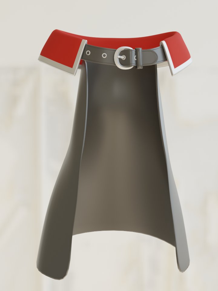 沙花叉クロヱさんのコート、どういう構造なのかわからないまま3Dで作ってたのだけれども、今現在の自分的解釈はこんな感じ。腕部分が独立してて肩にかかってる紐で吊っているのだと思うのだがどうか。 #さかまた飼育日記