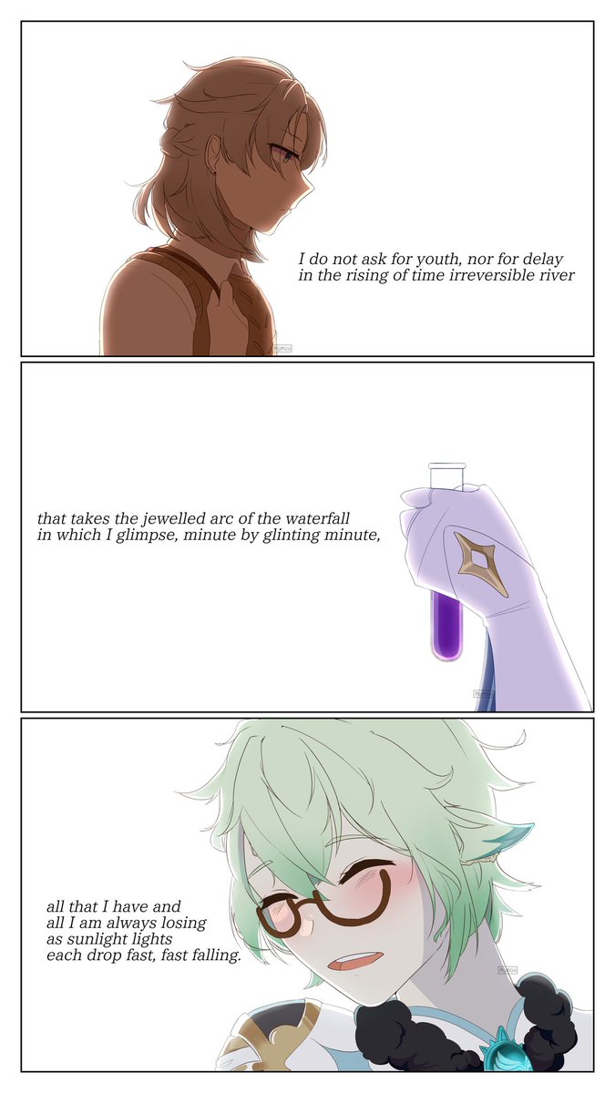 “Remembering that water, however luminous and grand, falls as fast and only once to the dark pool below” #alberose #albedo #sucrose #GenshinImpact #genshinimpactfanart