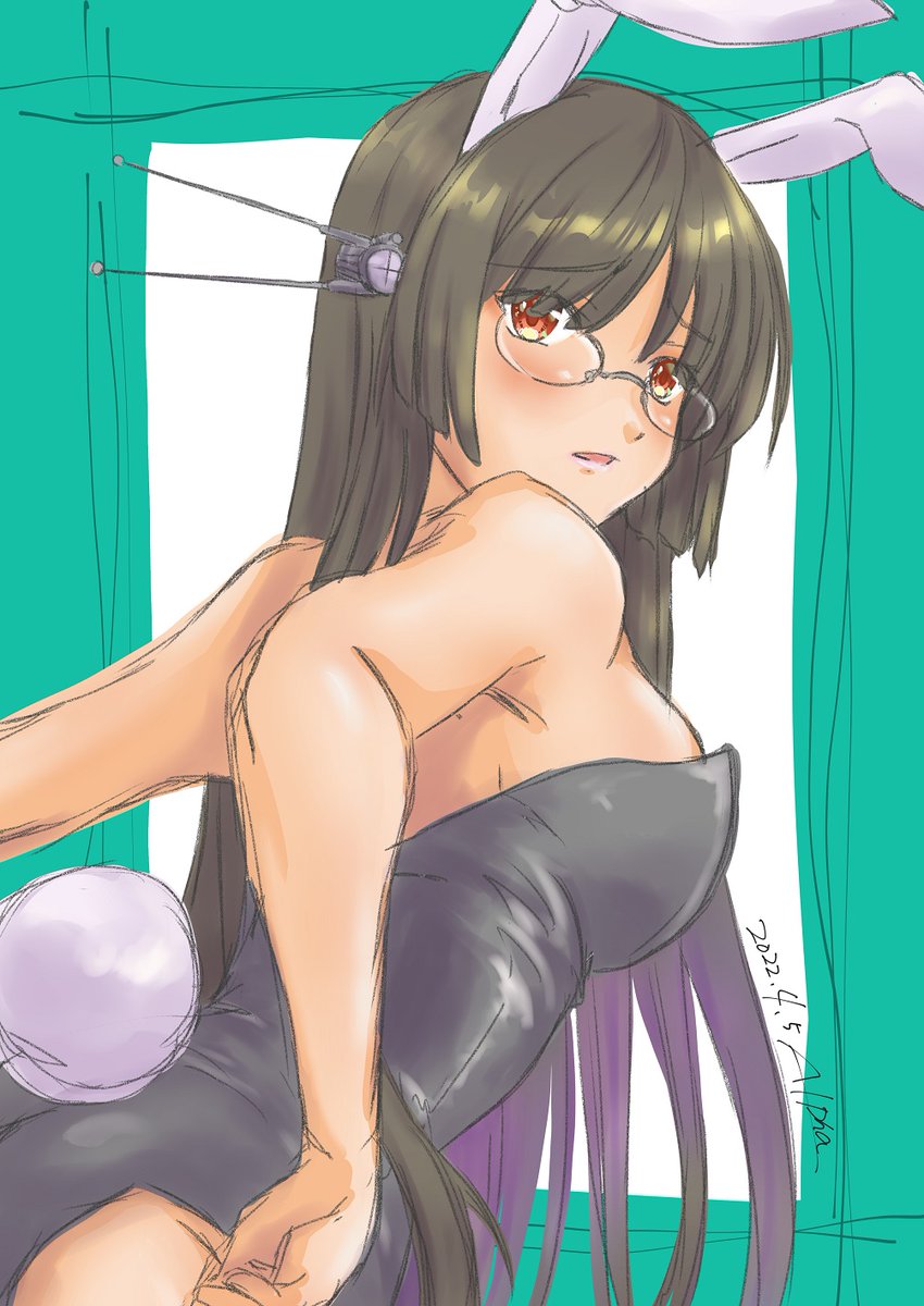 筑摩さん描くならこーいうポーズで描きたかった(*'▽')…が、びろびろ(スカート部分)の模様忘れてた。 #艦これ版深夜の真剣お絵描き60分一本勝負 #艦これ版真剣お絵描き60分一本勝負_20220319