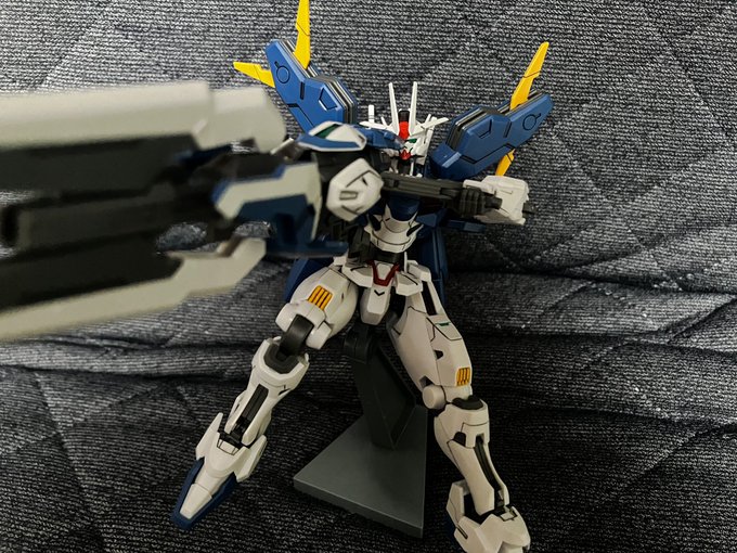 #ガンプラ #ガンプラの画像を貼るとRTされると聞いて #ガンプラ好きと繋がりたい #ガンプラ初心者 MG エールストライクガンダム 初めてMG組んだので頭抜けて周りよりでかい