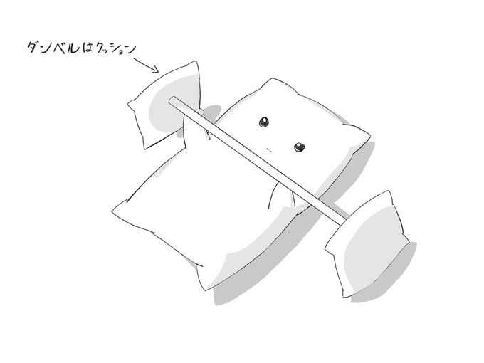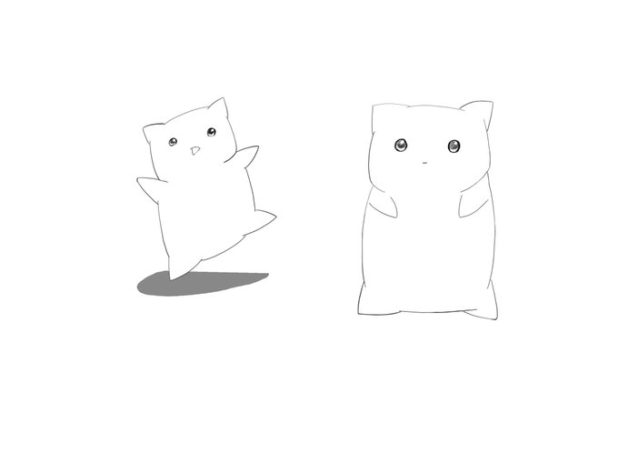 クッション×ネコなキャラクターを描いています! 今回は運動しているバージョンです。 光源の位置を意識して影を適切に描くのが難しいです。 #オリジナルイラスト #イラスト #絵描きさんと繋がりたい #イラスト練習