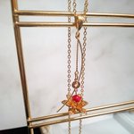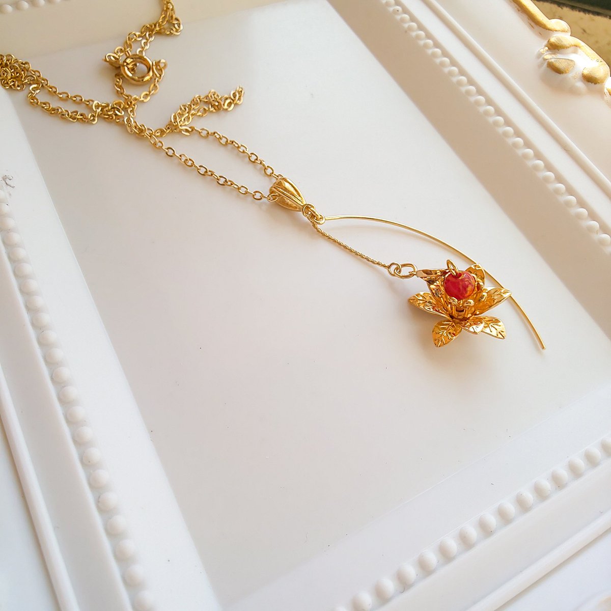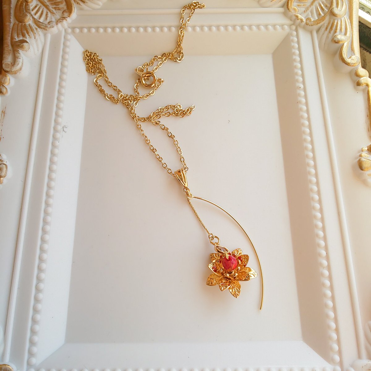 【ロジュイメージネックレス】 グッズ交換でお相手様に無事お届けできたので御披露目です。 映画の冒頭の花の術のシーンの花をイメージした物をメインに、ネックレスを作成しました。ロジュ君の髪色に近いパーツも使い、普段使いできそうな物を作りました #羅小黒手芸部 #hakumaiのドレスコード