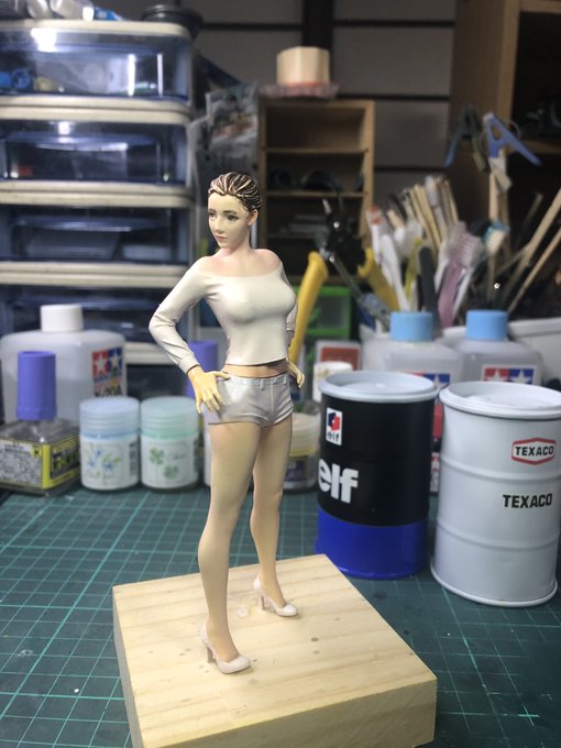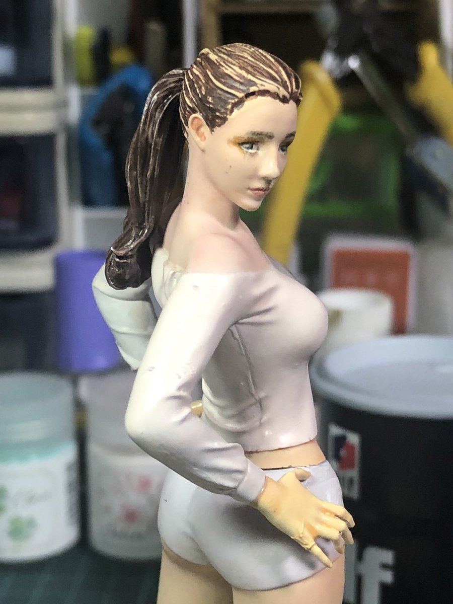 #今月作ったプラモ晒そうぜ #女性フィギュア ソルモデル(韓国) ユナさん 形にはなりました😅 レジンのリアル系をラッカー、エアブラシで肌色塗ったのはじめてです😃筆塗りはエナメルとアクリルの併用です😃瞳に挑戦したが全然できなくて😅まあ、思った出来です😃