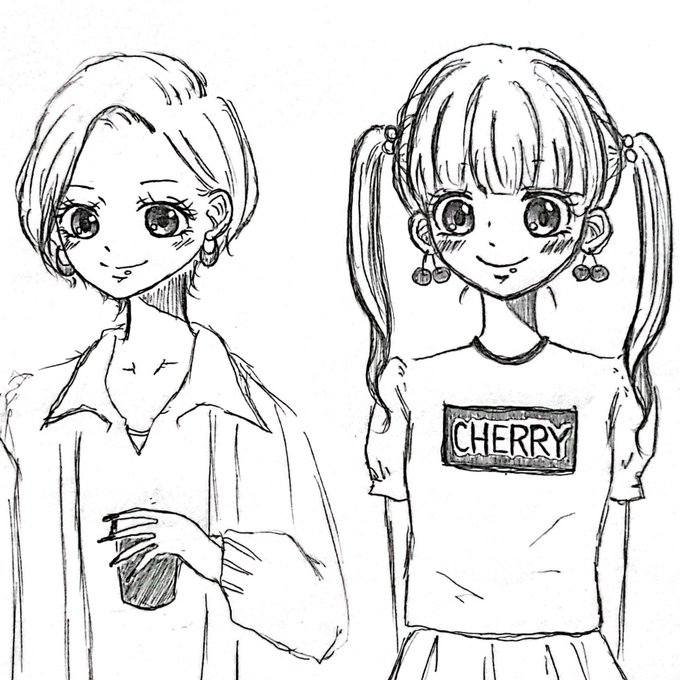 昨日、お友達と電話しながら描いたイラストたち☺️🧡🍒 私にしてはなかなかレアなタッチのイラスト描いてみた(*´꒳`*) #illust #おえかき #お絵描き #イラスト #絵 #落書き #らくがき #イラスト好きな人と繋がりたい #絵描きさんと繋がりたい #イラストレーターさんと繋がりたい #イラストレーター