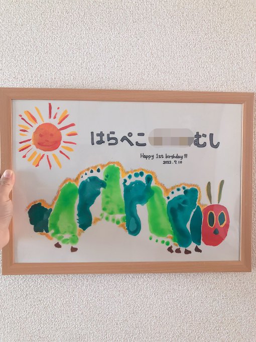 ちゃんと完成させました! ママお絵描き頑張りました。 ほめてほしい・・・😇 #足跡アート