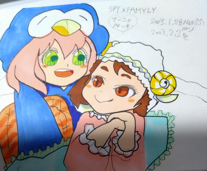 1 8 #スパイファミリー #絵描きさんと繋がりたい アーニャとベッキーです☺色々失敗💦デジタルならあっという間に修整出来るんだろうけどこれもまぁアナログのアジということで…だめ?😅 23/02/05 23:55