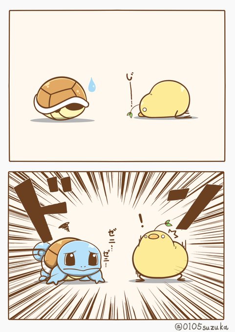 ポケモン 🐢「からにこもる」 🐤「にらみつける」 #お絵かき #お絵描き #イラスト #イラスト好きな人と繋がりたい #ゆるいイラスト #ゆるキャラ #野菜 #モンスター #農業 #コラボ