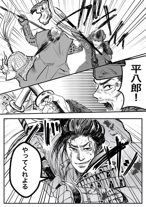 平八郎くん作画が少年ジャンプでかっこよすぎる!!! 戦闘シーンでの髪の毛や白い紐のラインまで美しくて戦ってるとこもっと見たいー! 面頬?ですか?かっこよすぎ! #どうする家康 #どうする絵