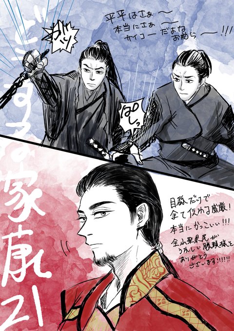 237 1279 #どうする家康 #どうする絵 信長に挑発された平八郎とそれを止める小平太…!平平最高すぎる…!!! わざと強い平八郎の前で挑発してましたよね? そして威厳に満ちた勝頼様! 命令も頷きだけでスマート!かっこいい!武田の統率取れてるの強者!が伝わってきていい最高…! 23/06/04 22:27