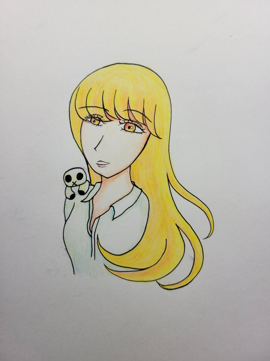 のろどおるちゃんwith金髪女性 あくまでも主役はのろどおるちゃんであると言い張ります! 色鉛筆すごく久々かもしれない。 #落書き #アナログイラスト #色鉛筆 #オリジナルキャラクター #オリジナルイラスト