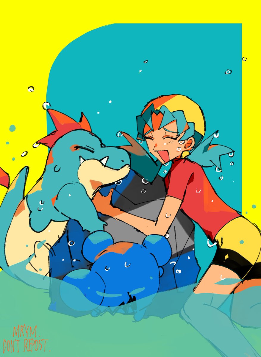 #ポケモントレーナー版深夜の真剣お絵描き60分一本勝負 お題:川が似合うと思うトレーナー クリスちゃんとアリゲイツとマリルです💙