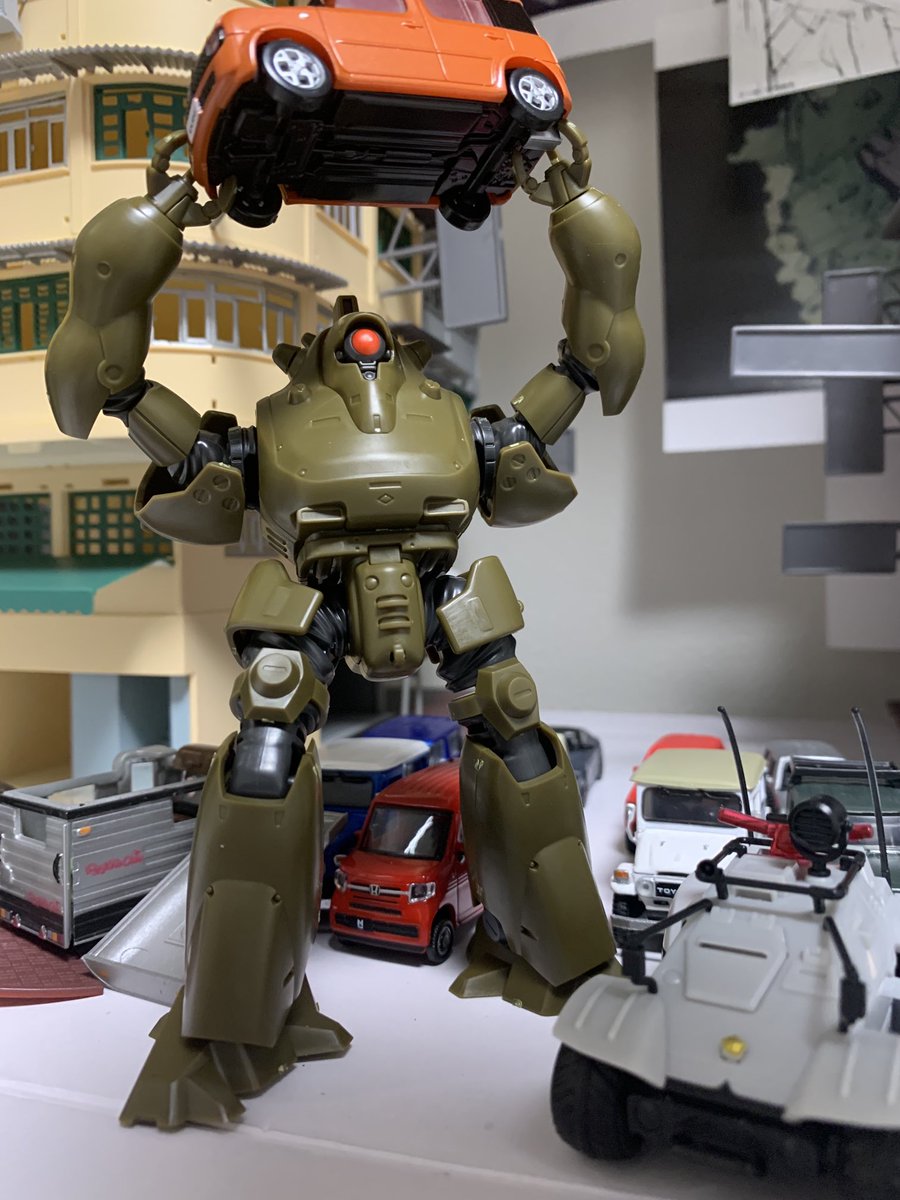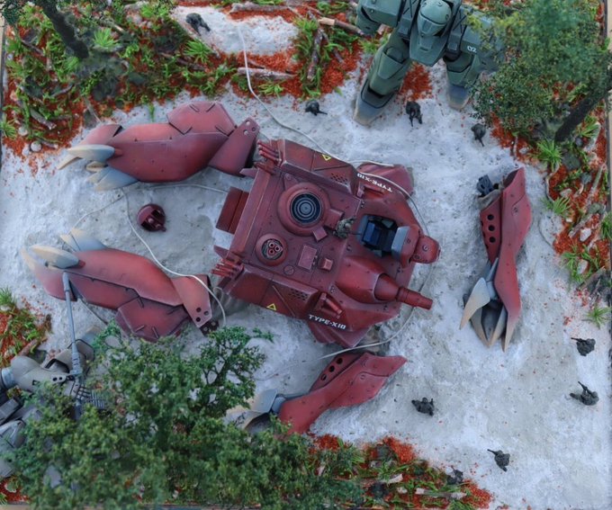 #キャラプラコン2023 に出品したリアクティブアーマーイングラムを斜め上から。この角度がいいな。秋葉原にお越しの際はぜひイエローサブマリンへ。 #パトレイバー #パトレイバー模型部 #アオシマ