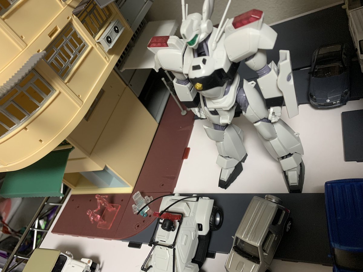 #キャラプラコン2023 に出品したリアクティブアーマーイングラムをなかなか観に行けていません。撮り溜めていた写真を眺める日々です。版権っぽいよいショットが撮れました。秋葉原に行かれた際はイエローサブマリンにぜひお立ち寄りを。 #パトレイバー模型部 #パトレイバー
