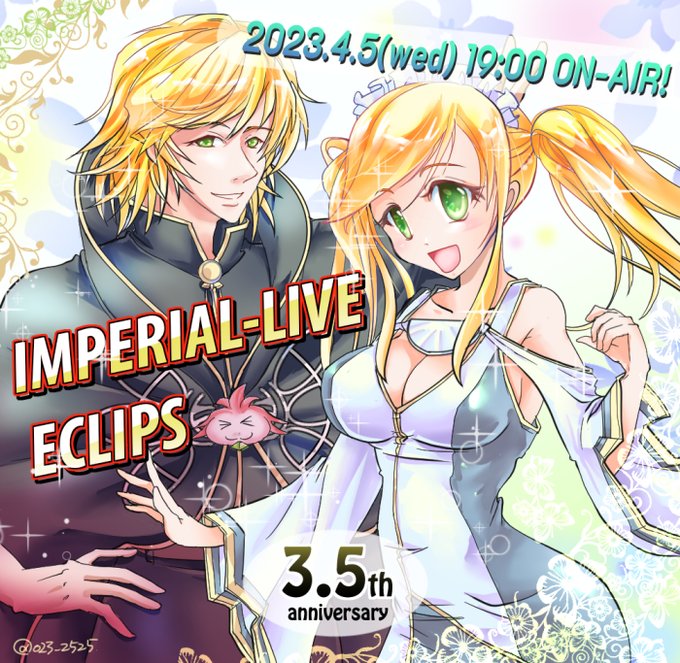 #祝インサガシリーズ8周年 おめでとうございます。いつも楽しませていただいております…! 当日遅刻ですがベリアス皇家きょうだいにてお祝いですー! アデル (羽庭てすら .@023_2525) ミルリク (ナカツ .@naka_t_su) 第二報は本日正午を予定です…! #インサガEC #サガ絵