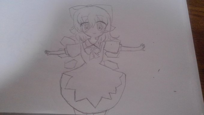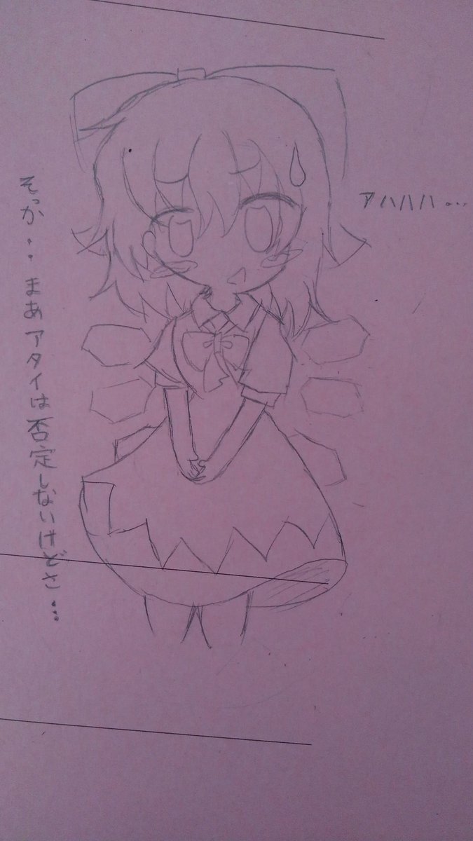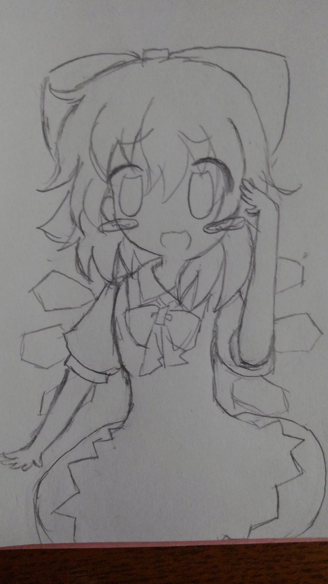 落書きとしてパパっ書いたやつ そろそろちゃんと描かなきゃな…w #チルノ #東方Project #アナログ絵