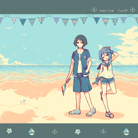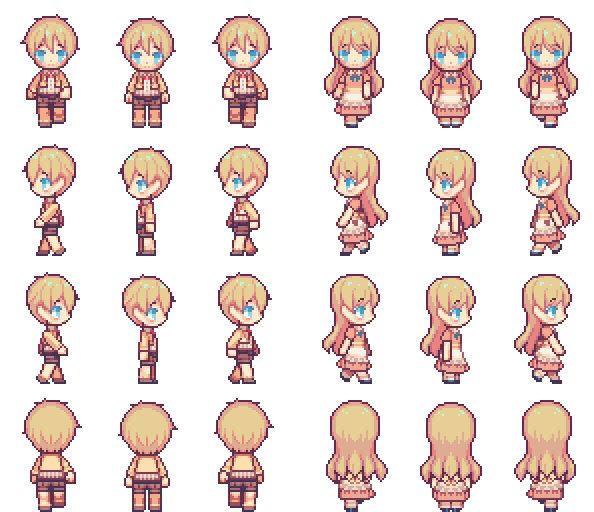 掲載許可いただいたので サークル、コンマミオン様のゲーム「星飼いの詩」主人公二人です よろしくお願いします!! #pixelart #ドット絵