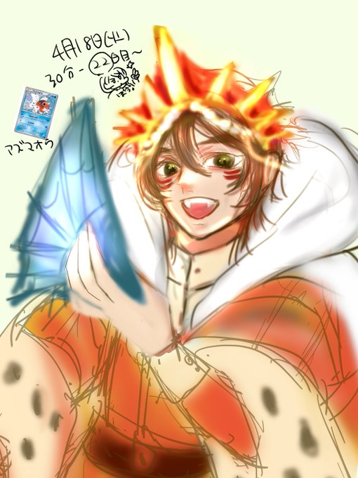 1 4 描いた本人しか分からないメモ📝 今日の擬人化はアズマオウ描こうと思う…(ㅎ.ㅎ )ヤバイナマエマチガエタ この子の英語名がSeaking(海の王)だったので王様ぽいイメージ。 女王の為、舞を舞うってなんかいいよね。衣装はもうちょい変えるかも。 #イラスト #擬人化 #ポケモン 23/04/18 07:30