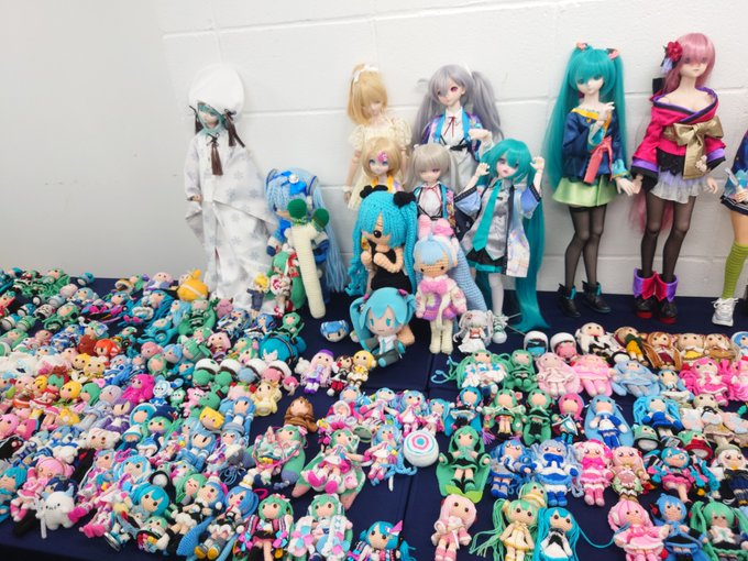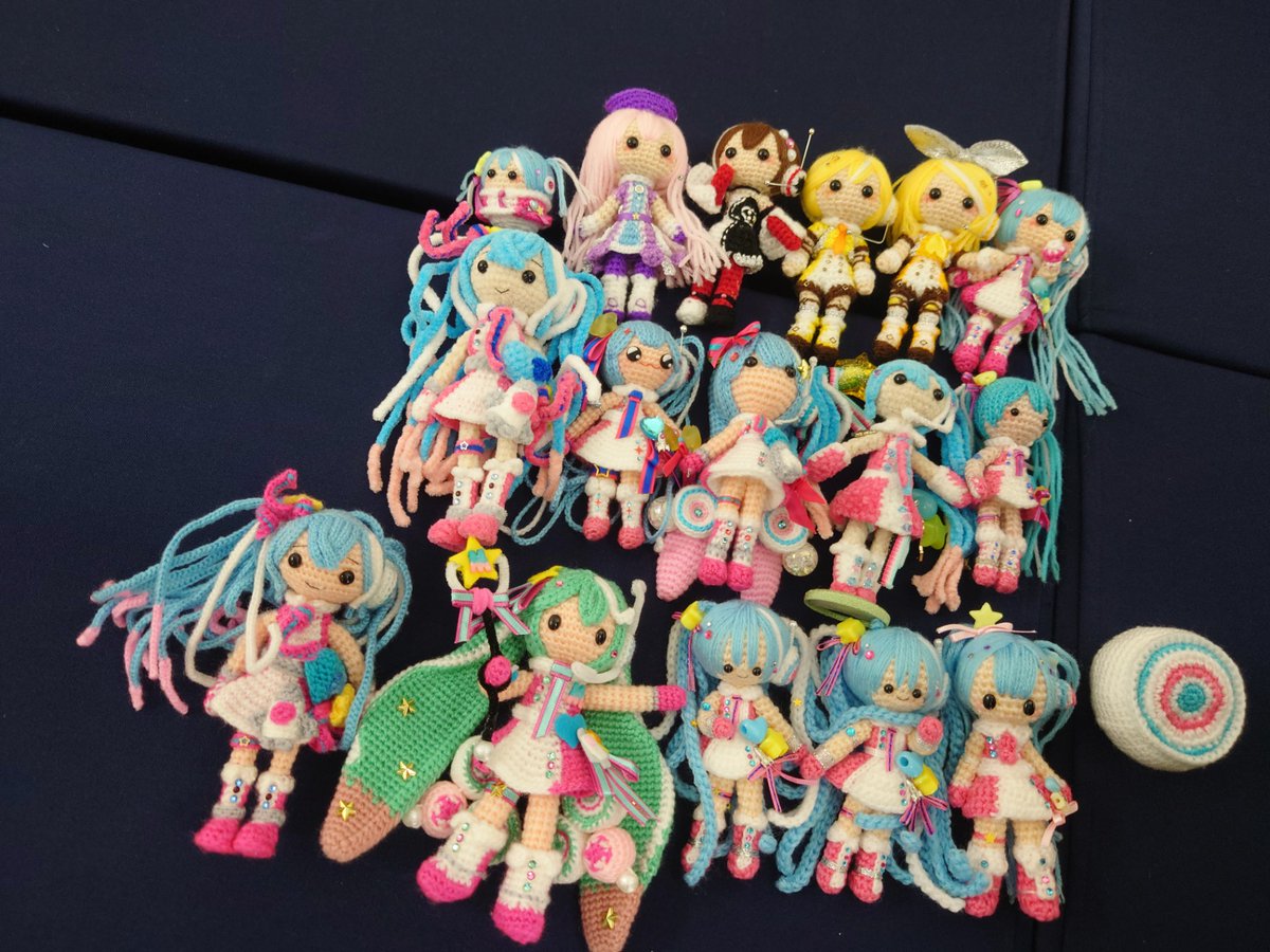 マジミラ夜ライブ後、珍しく酒を入れずに、あみぐるみを愛でる輪に加わってておりました いや、愛でるとかいう量かこれ(賛辞) 10thちゃん合わせが圧巻すぎて壮観 #あみぐるみ #マジカルミライ10th