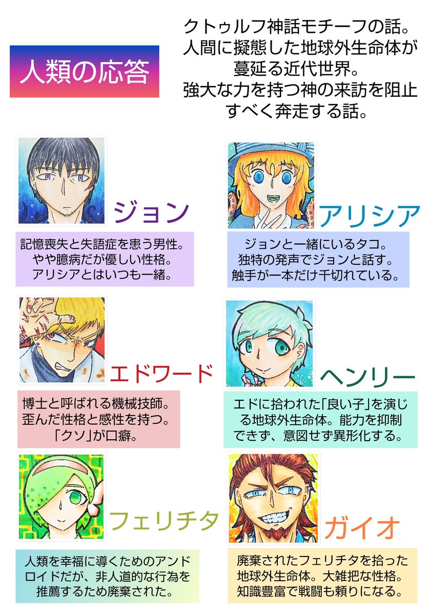 8 18 #夏の創作クラスタフォロー祭り #私の絵柄が好みって人にフォローされたい 久しぶりのタグ参加! 後半二枚は今熱い創作。 ギャグもシリアスもエログロも不定期で描きます。 ふぁぼかリツイートでご挨拶に伺います。 19/08/16 22:17