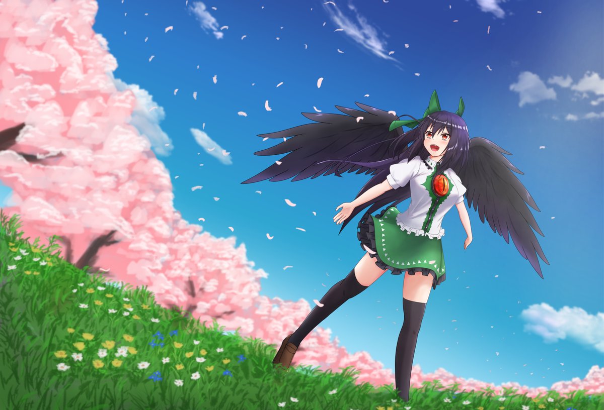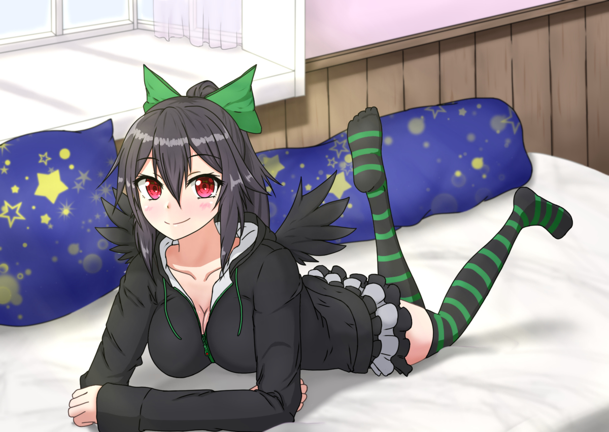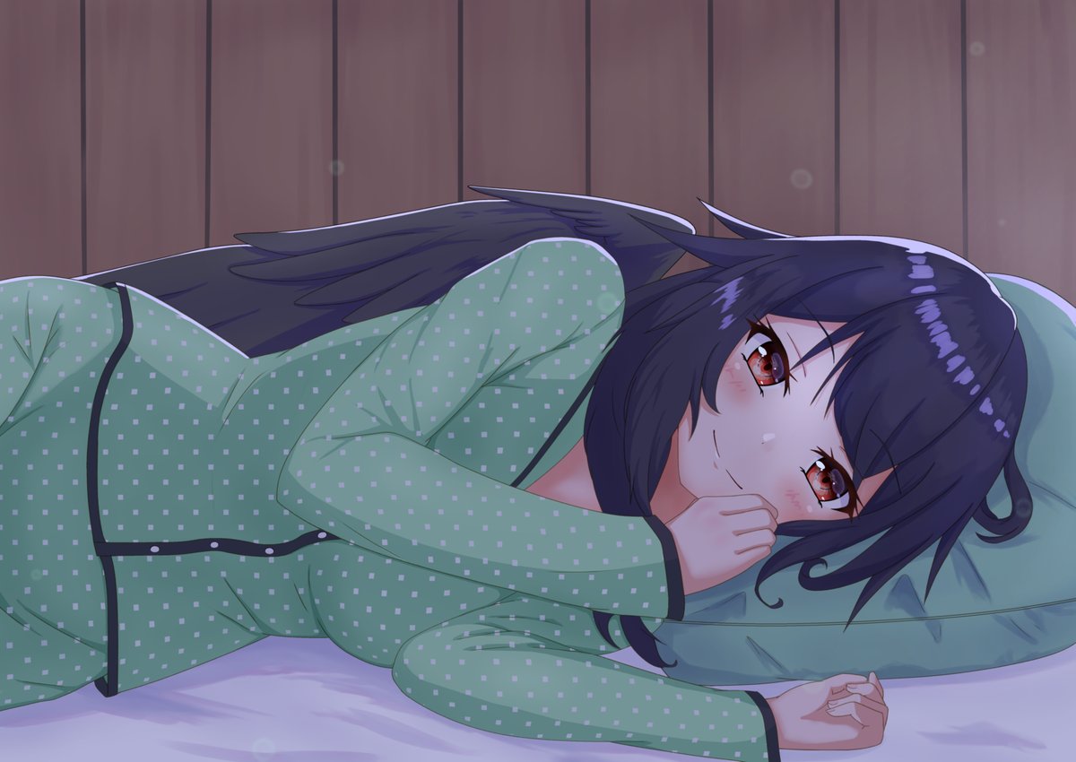 お空ちゃんと添い寝がしたい!!! いや、最近疲れ気味なので癒しを求めて描きました 夜っぽく加工する工程がちょっと楽しかったです 暗い部屋で見てもらえると多分いい感じになります 早速今日から、でかいモニターに映して一緒に寝ようと思います! #東方Project #霊烏路空
