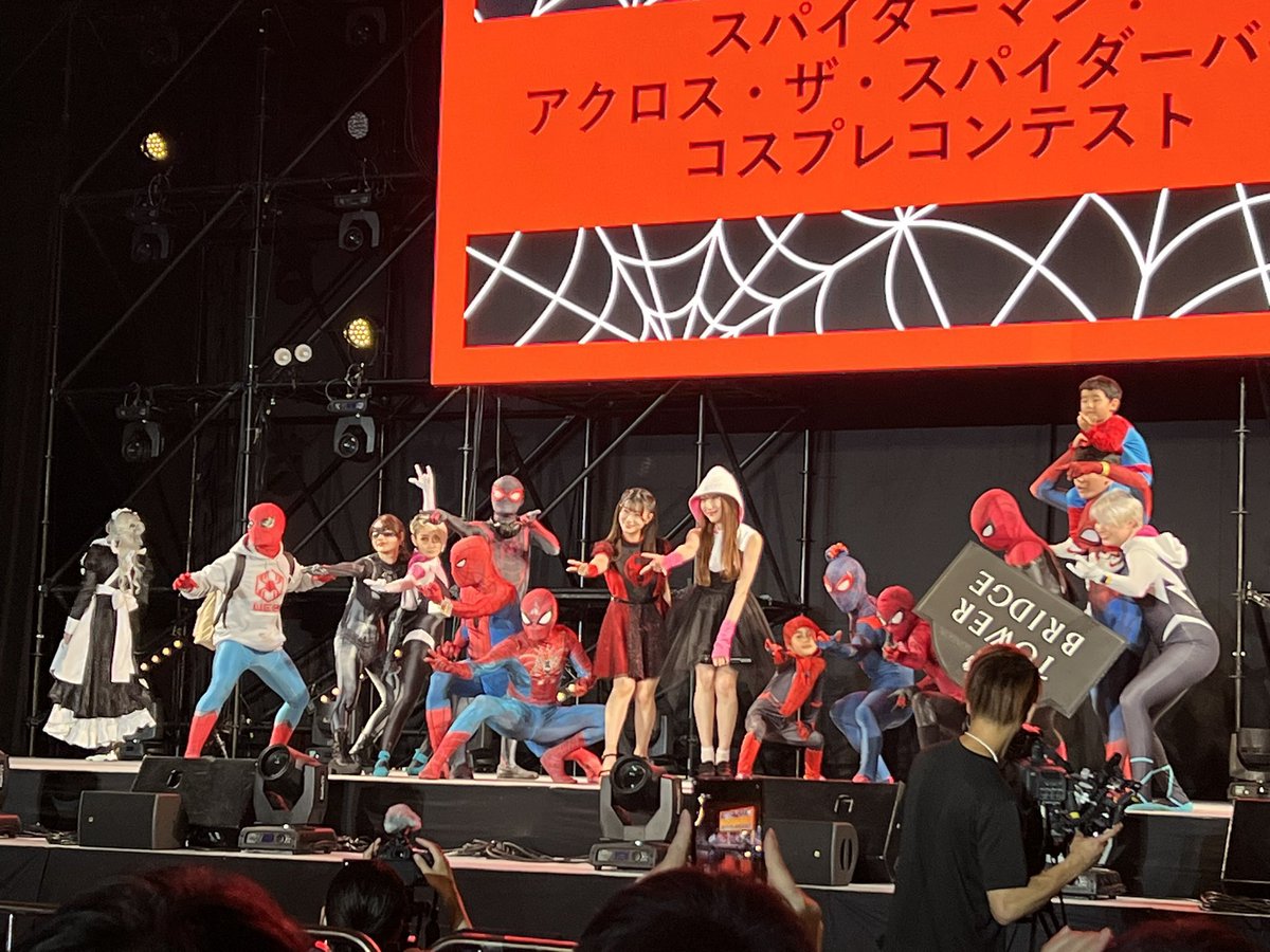 あ、私いた🤣🤣🤣 お子様が2名かっこいいスパイダーマンで参加してくれて周りのスパイダーマンもとても優しくて素晴らしいステージでした! #大阪コミコンコスプレ #スパイダーマン #OsakaComicon