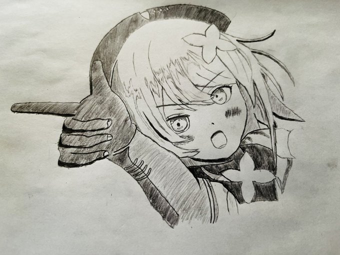 アニバーサリーのサムネがカッコよかったので鉛筆で描いてみたけど、難しい(汗) うーん🤔 バランスが(><) #栗駒こまる #こまるんあーと
