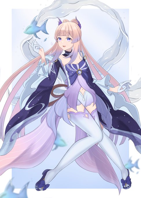 #今月描いた絵を晒そう 今月も一枚だけ! いま描いてる心海を早めにかきあげて、来月はもう少しかけるようにしたい!🦦