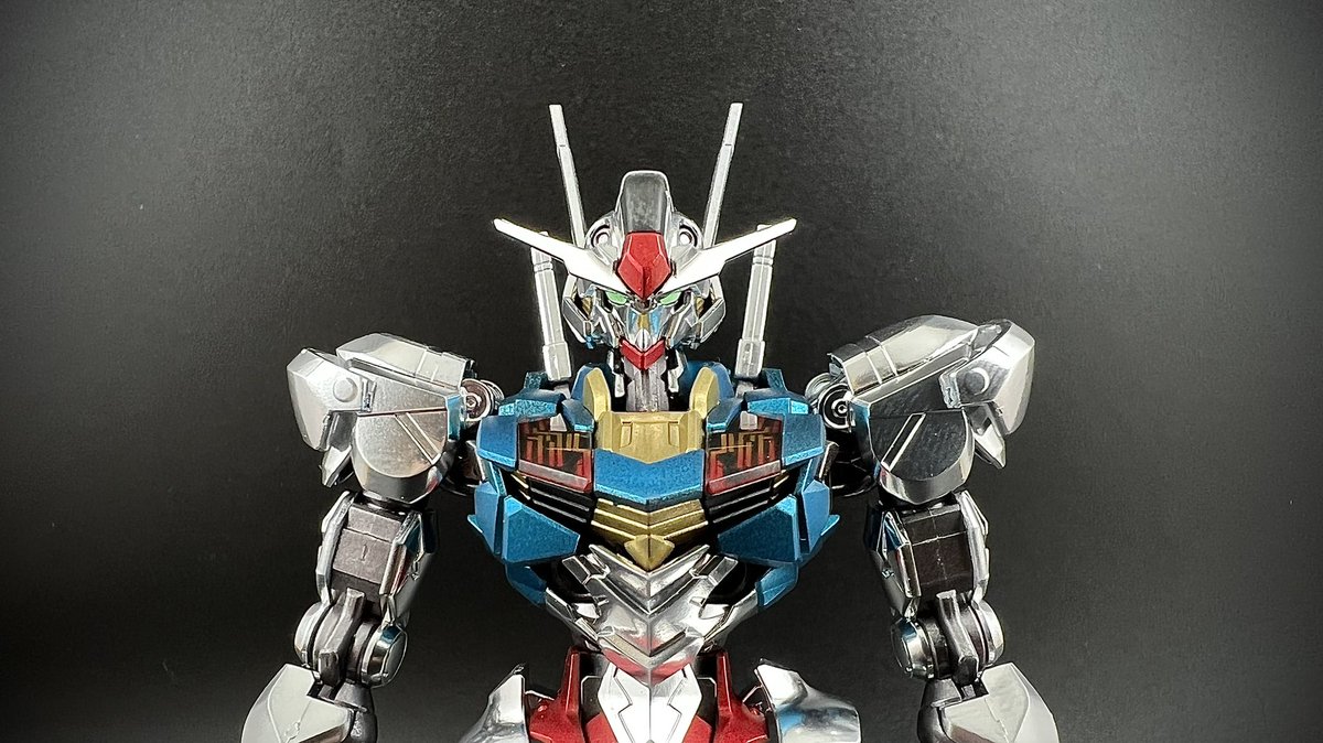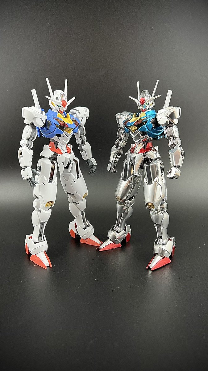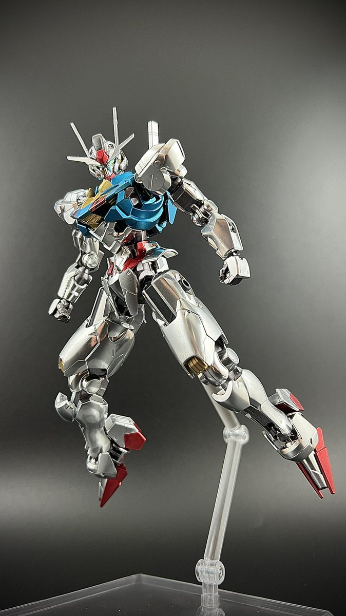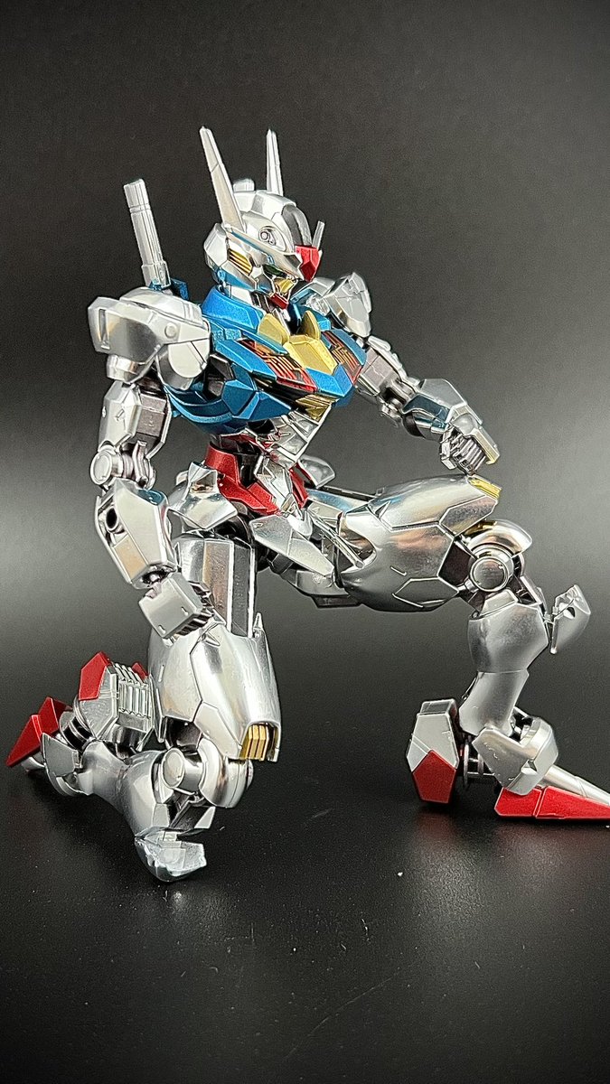 誰にも追いつけないスピードで 地面蹴り上げ空を舞う 呪い呪われた未来は 君がその手で変えていくんだ #テカテカギラギラ選手権 1つ目は煌めく魔女 ガンダムエアリアル 1枚目はPVラスサビの時にスレッタが見つめてる先にいるエアリアルをイメージした #ガンプラ #水星の魔女