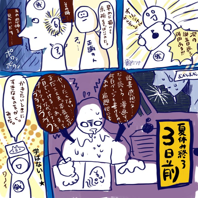 ✑昨日のできごと思いつき漫画 絵描いてる人ならわかるかも……? 人間本質は何歳になっても変わらんのです 読書感想文が苦手でした……… 〜ゆるゆる漫画なので優しい目で読んでください〜 #漫画が読めるハッシュタグ