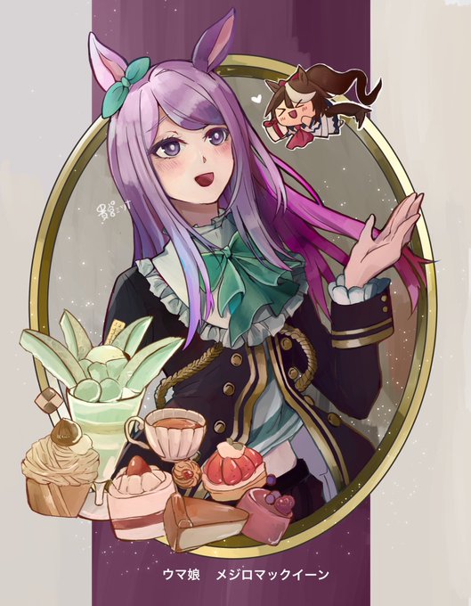 🎊おめでとうございますー!!!㊗️ アニメ二期は感動しましたね😭 スイーツ好きとのことで、デザートを添えて………🎂 ミニキャラはトーカイテイオーです!! #ウマ娘 #メジロマックイーン #メジロマックイーン生誕祭2023 #メジロマックイーン誕生祭2023 #絵描きさんと繫がりたい