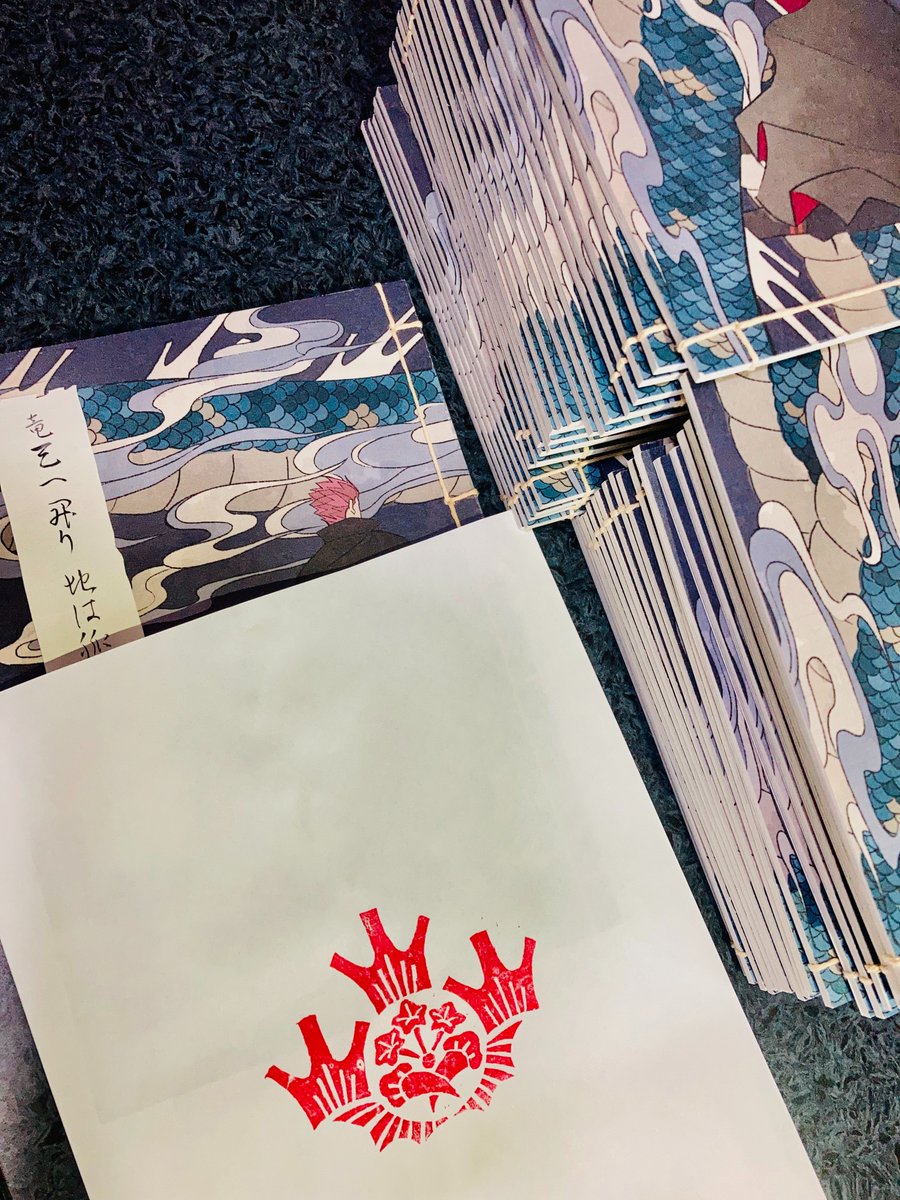 28 145 冬インテお品書きです!よろしくお願いします! ・新刊和綴じ版は通常製本版と表紙絵が同じなため袋に入れてお渡しします。 ・パーティー本以外の既刊は残部少なめです。 (載ってないですがみままが一冊あります) ・ワカバチャンから預かった合同誌があります。 23/01/02 21:43