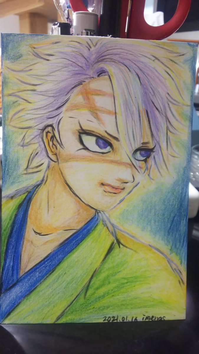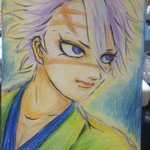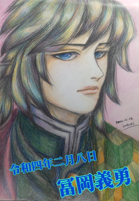 義勇さんおめでとうございます✨ お誕生日なのに、暗い顔でゴメンね💦 そしてバランスも悪くてゴメンね😭 (謝ってばっかり😅) でもガンバってちゃんと描いたよ🙏💕 #冨岡義勇生誕祭2022 #冨岡義勇誕生祭2022 #アナログイラスト #色鉛筆画