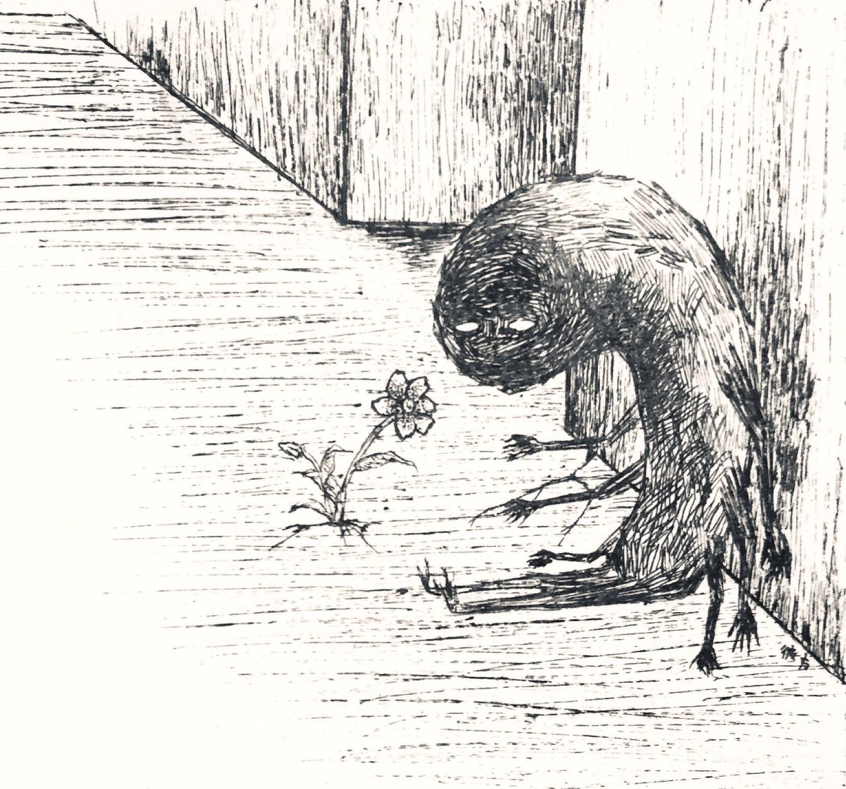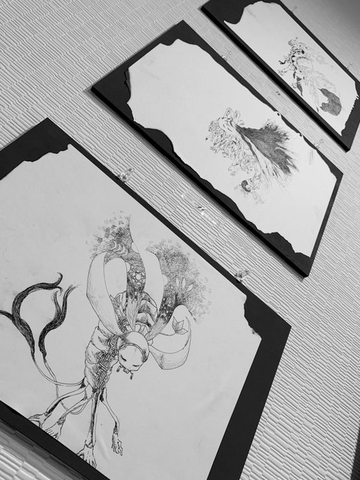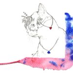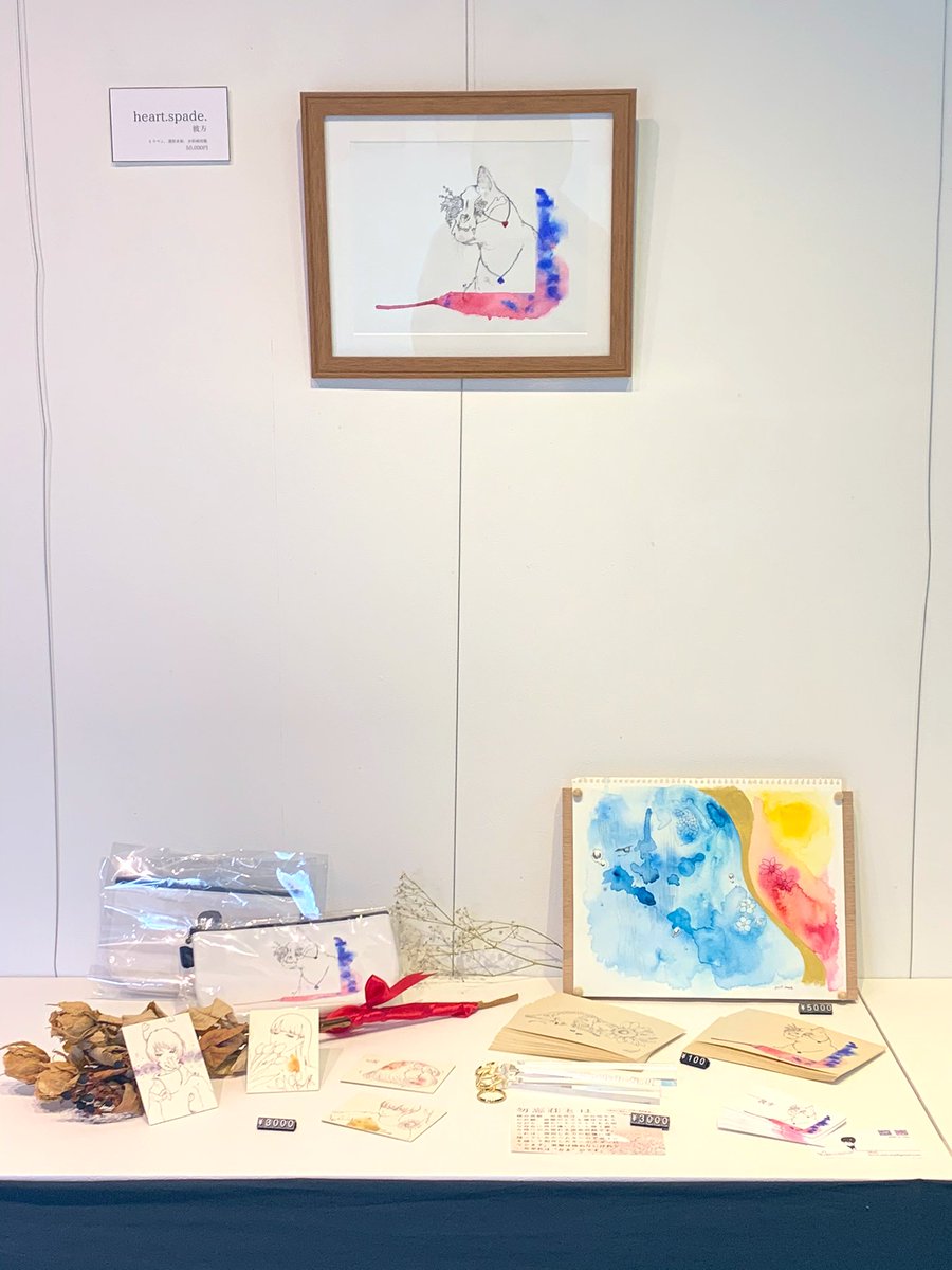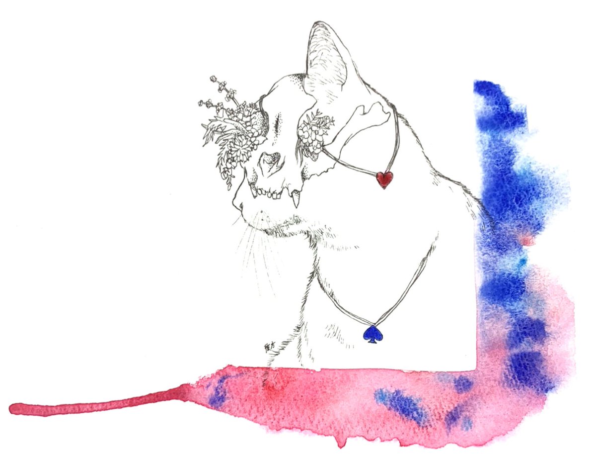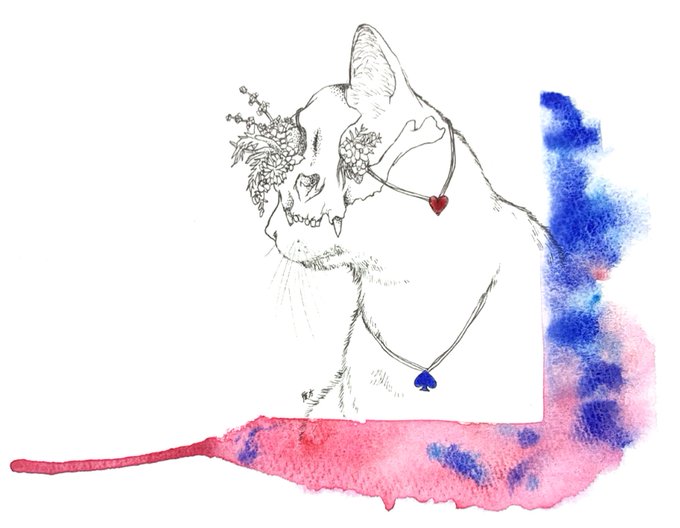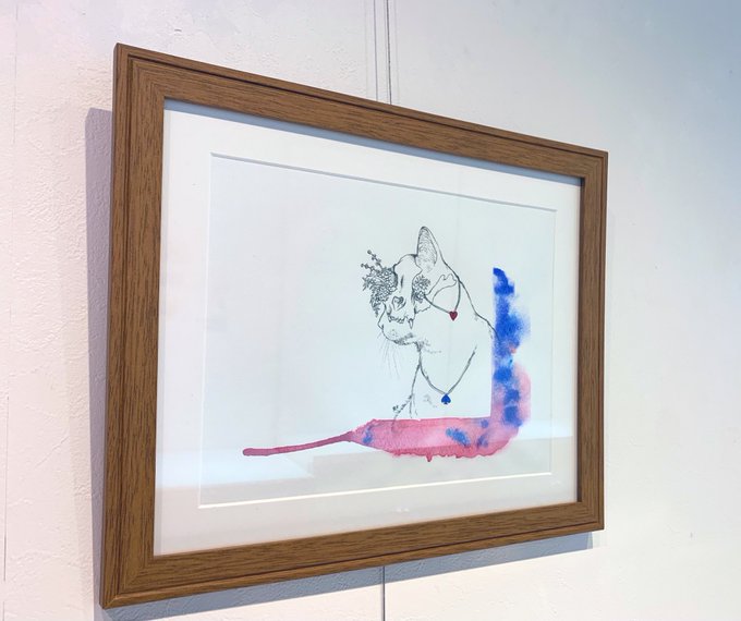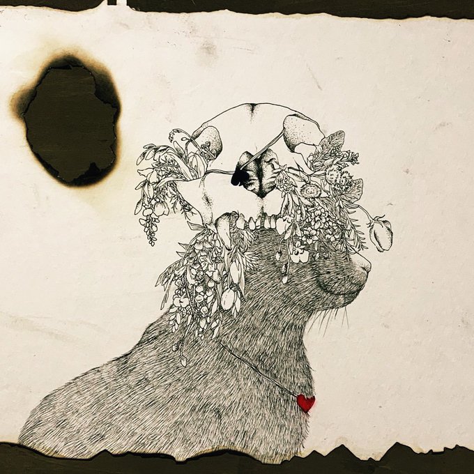 #花と咲く heart.spade. こちらの原画を展示しています。 自分の絵の中でとても好きな作品なのです。実在していた野良猫2匹がモデルです。 #cat #illustration twitter.com/03_k_22a/statu…