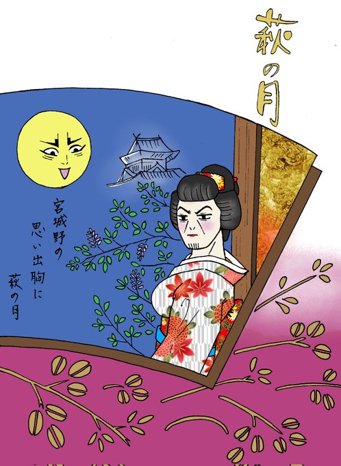 #ゴールデンカムイで地元銘菓紹介 仙台銘菓と言えば『萩の月』🌙*゚ 個包装の箱のあの絵を描いてみました🤗萩の月島姐さんの胸は本家よりだいぶ増量して描いております🙌 タグお借りしましたー!