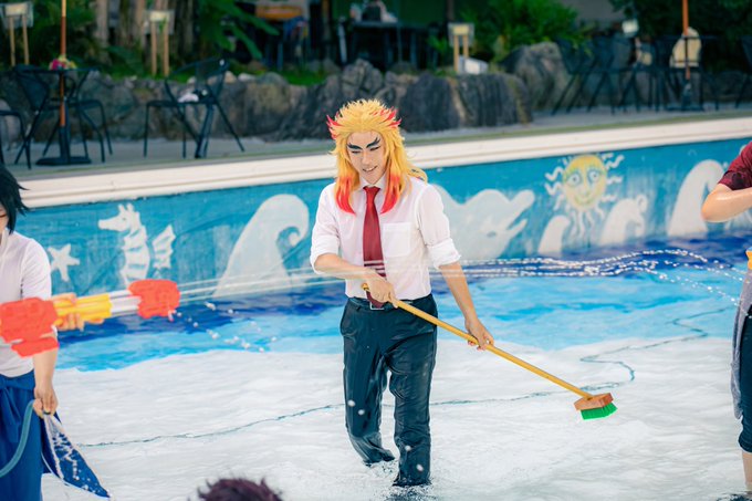 ⚠️cos⚠️ ALLオフショだけど、去年のプール撮影めっちゃ楽しかったなァ🤤って写真見てたら何やらお世話されてるの笑いました😆✨👍皆やさしい🥰✨ ひんむかれてるみたいにも見えるけどwww 撮影…@kuoooooosbckn