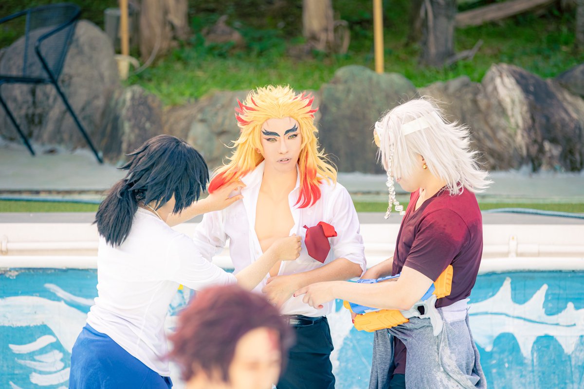 39 203 ⚠️cos⚠️ ALLオフショだけど、去年のプール撮影めっちゃ楽しかったなァ🤤って写真見てたら何やらお世話されてるの笑いました😆✨👍皆やさしい🥰✨ ひんむかれてるみたいにも見えるけどwww 撮影…@kuoooooosbckn 23/07/03 12:04