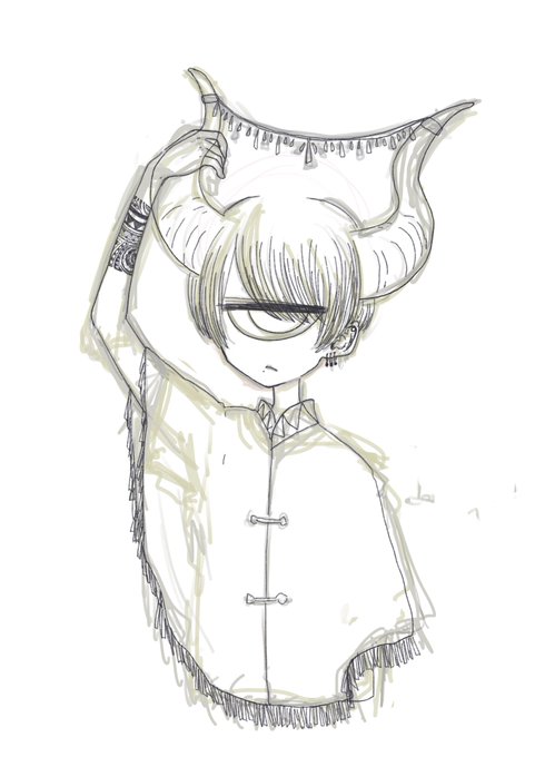 6 42 遅刻だし充電無くなって途中だけど 「動物の角」 #新単眼版深夜の真剣お絵描き60分一本勝負 @tngn_1draw22 19/05/10 01:02