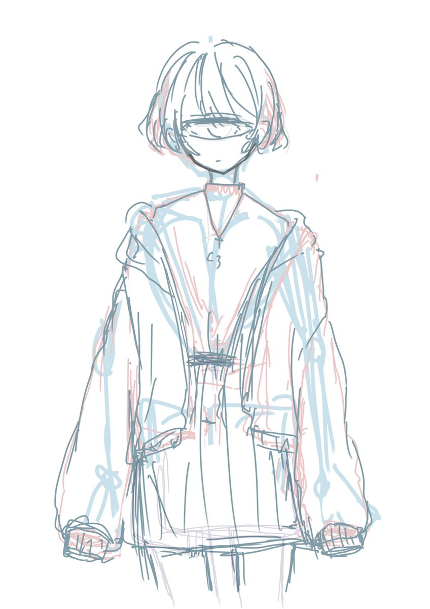 ふわふわヘアー ラフも可愛いから載せちゃう @tngn_1draw22 #新単眼版深夜の真剣お絵描き60分一本勝負