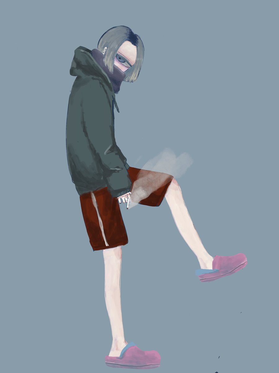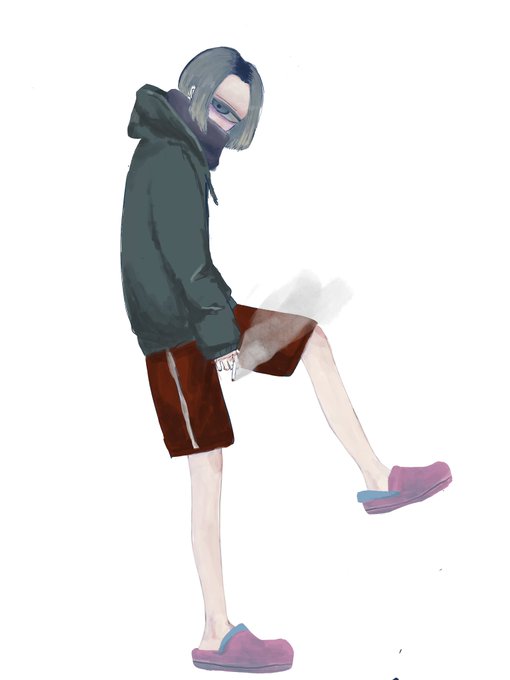 11 45 ぜんっぜん間に合わなかったワンドロ お姉ちゃんのサンダル履いて外で煙草吸うてるプリン頭くん ダウナー/隈 #単眼 #仮単眼版深夜の真剣お絵描き60分一本勝負 20/04/23 01:45