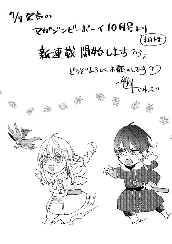 【お知らせ】呟いて大丈夫との事だったので。。 今月発売のマガジンビーボーイ9月号さんに予告が載っております❄️ 来月9/7発売の10月号にて新連載が始まります! またしてもファンタジーBLです。 どうぞよろしくお願いします❄️ #暁の皇子と呪われた賢者 twitter.com/bboy_editor/st…